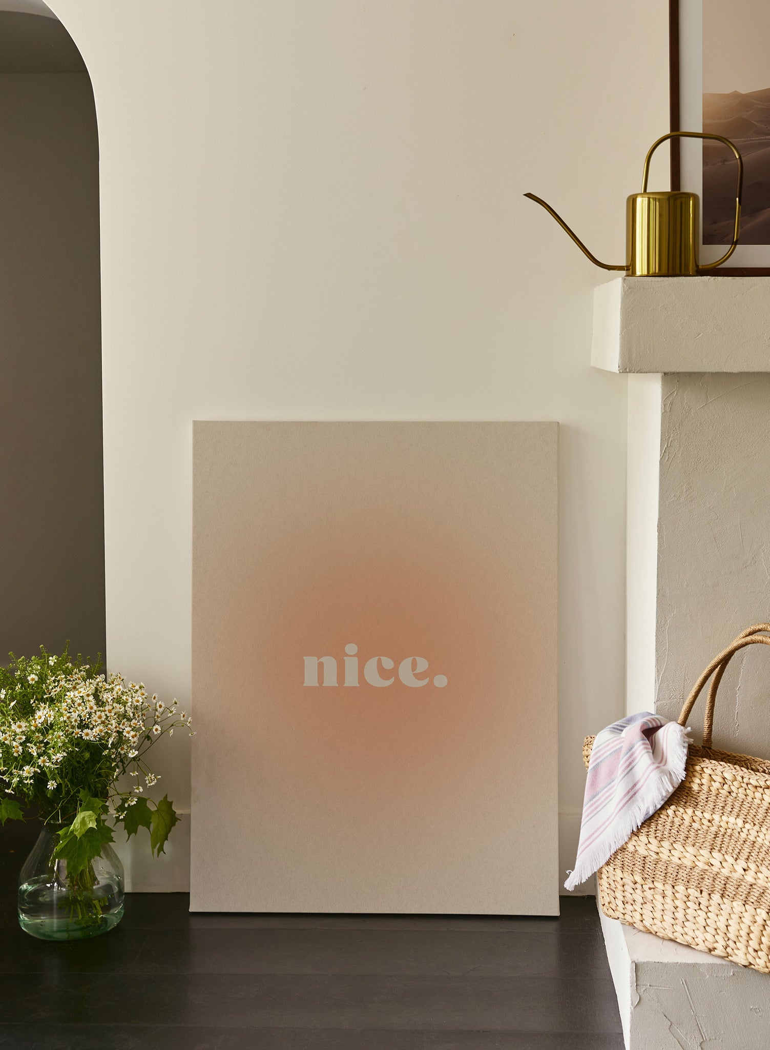Nice. It's a word, a compliment, a way of life! This typography poster layers the word nice over a grainy orange and beige gradient.