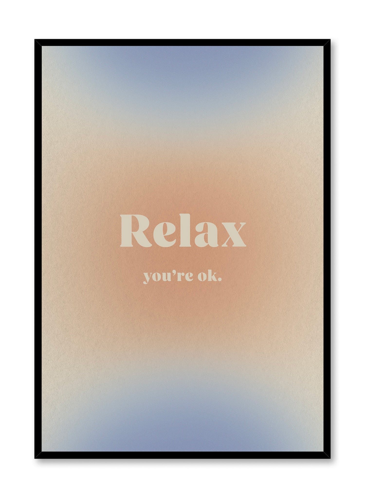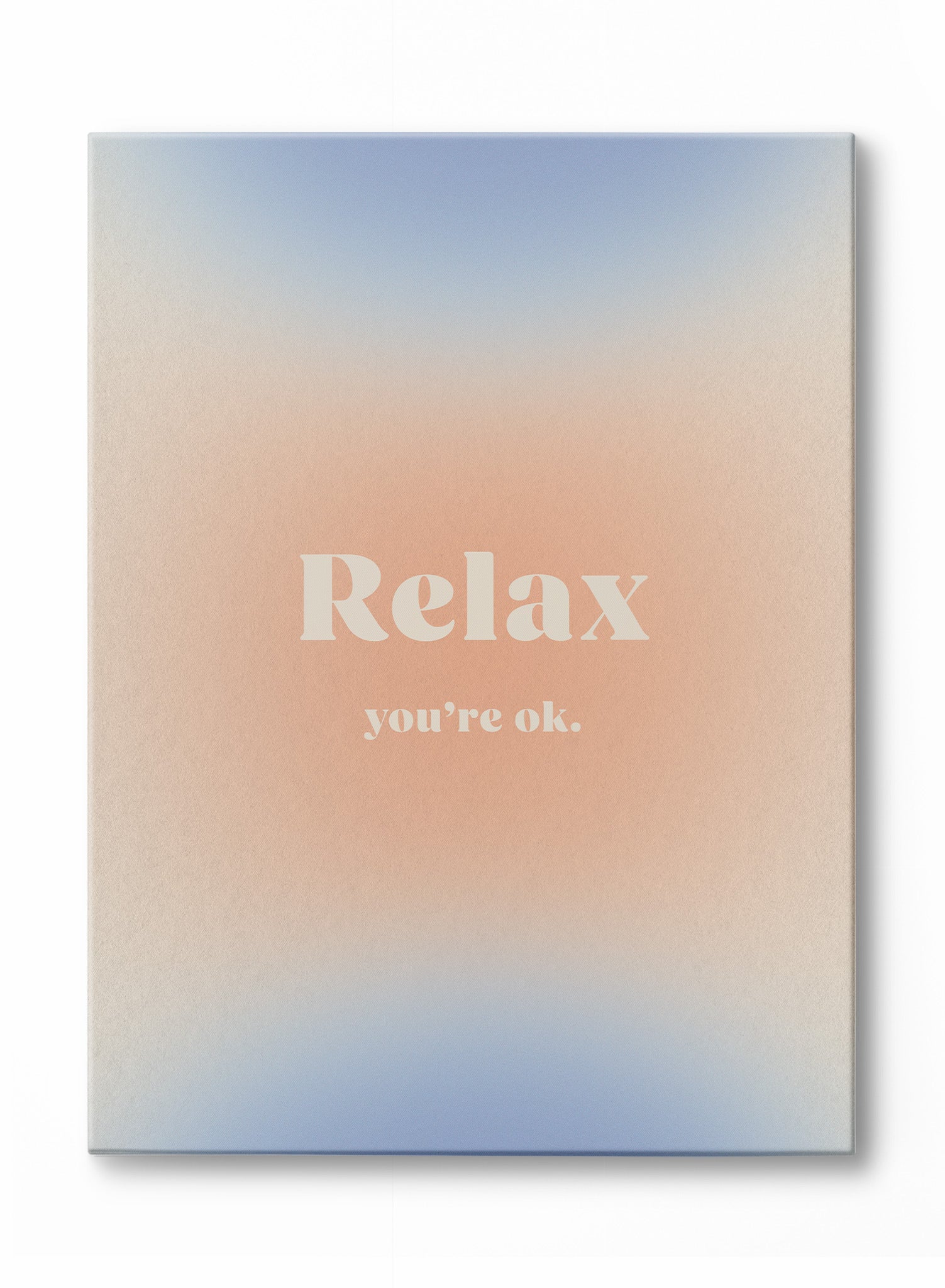 When your mind is racing and your plate is full, remember to Relax (you're ok)! This typography poster combines soothing words with an orange and blue gradient.